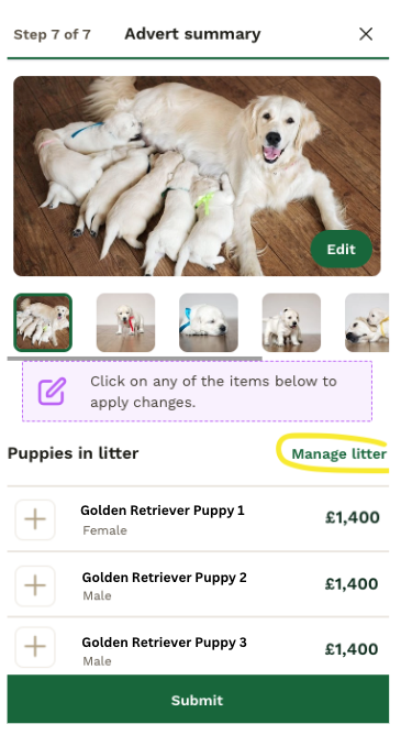 - For more information on editing the pet details for your listing, please see the dedicated "How do I manage my litter?" section on this page.